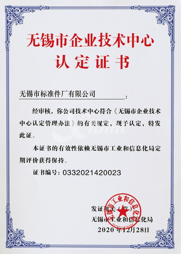 2020年12月公司獲評“無錫市企業(yè)技術(shù)中心”